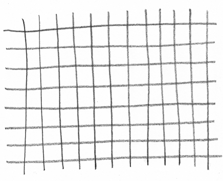 次に縦の線と横の線を組み合わせた練習をします。いずれもまっすぐな線をフリーハンドで引きますが、等間隔になるように気を配って描いてみましょう。
