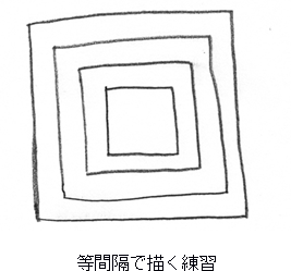 より狭い間隔でも描いてみましょう。描き終わりをしっかり留めて描く練習もしましょう。