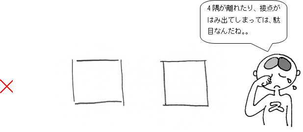 注意したいのは、角をしっかり描くことです。はみ出したり、隙間があったりすると、四角ではなくバラバラな印象となってしまいます。