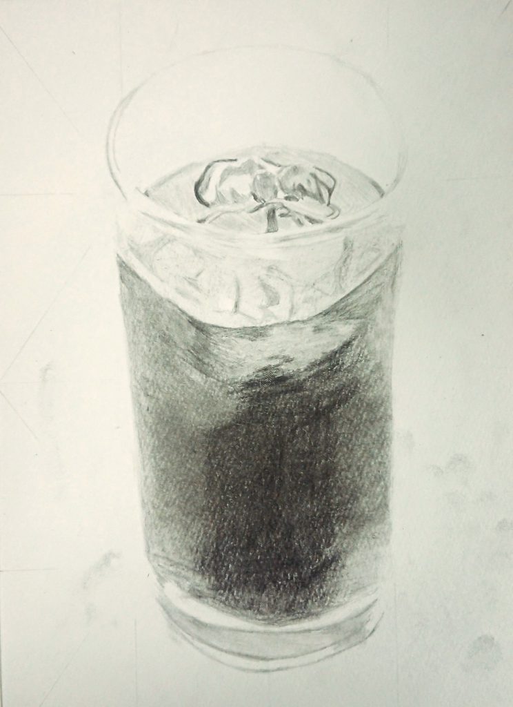 グラスの真ん中あたりは、しっかりと濃く描くことはできているのです。