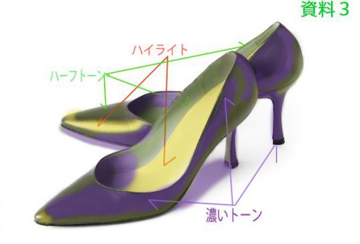 【気をつけたこと】「靴という製品として不自然な形にならないよう形や重心に注意しました」とありましたが、ハイヒールの滑らかな曲線は難しかったかもしれませんが、ほぼ違和感なく自然な形に描かれていて良いですね!