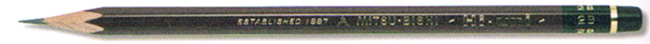 鉛筆についているH、B、Fの記号は、芯の堅さと濃さを表しています。HはHARD(ハード:堅い)の略で、BはBLACK(ブラック:黒い)の略となります。