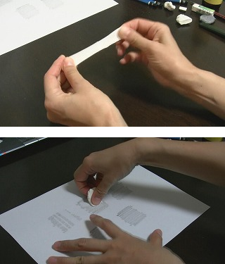 練り消しゴムは、適当な大きさにちぎり、使う前に柔らかく練ります。