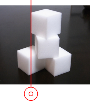 垂直に糸をたらすことによって、「どの位置がどの位置と同じ」とか「どこがどのくらい出っぱているのか」など、正確な形をとる際の手がかかりにすることができます。