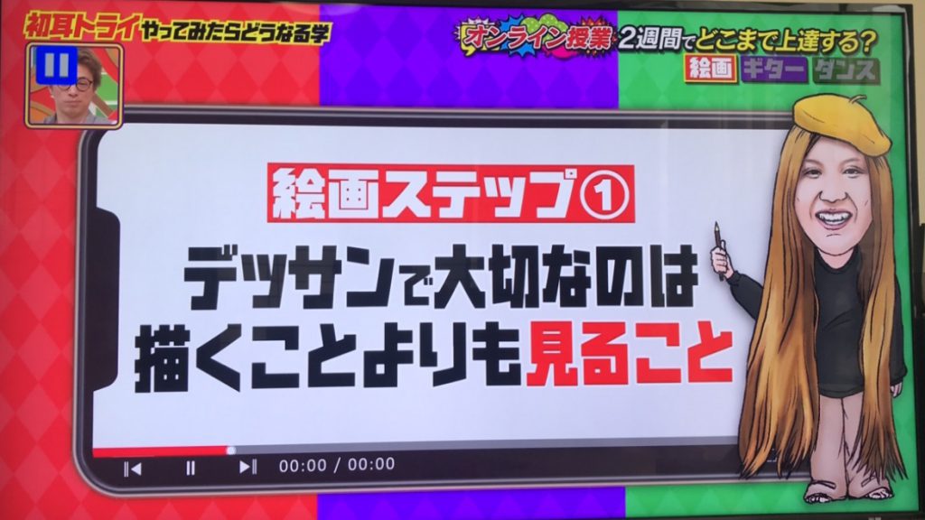 6月7日に放送された「林先生の初耳学!」にて、お笑い芸人・納言(なごん)の薄幸(すすきみゆき)さんに、絵の指導をさせていただきました。