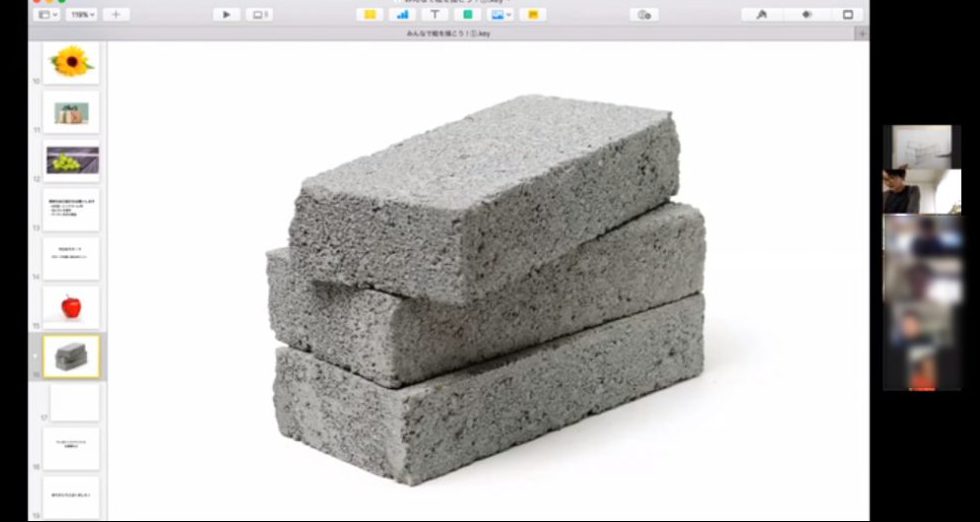今回は、何のモチーフを描こうか、参加者された方で多数決をとった結果、コンクリートブロックを描くことになりました!(笑)