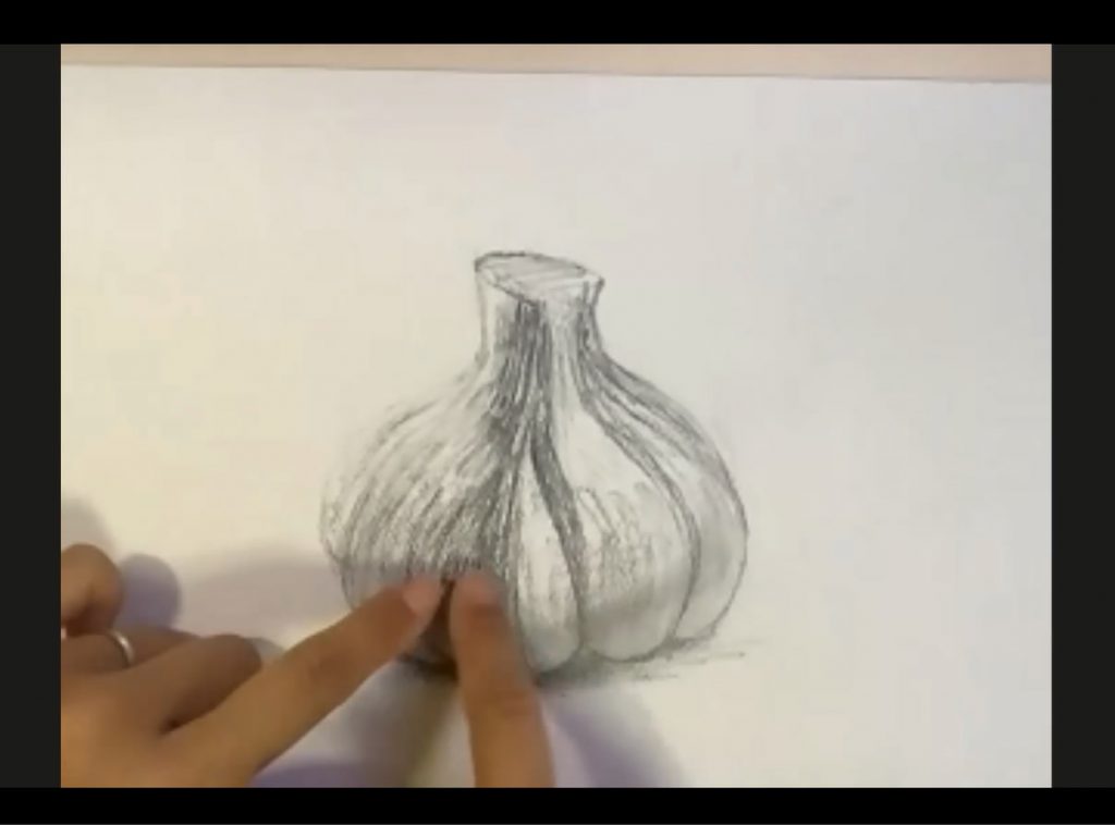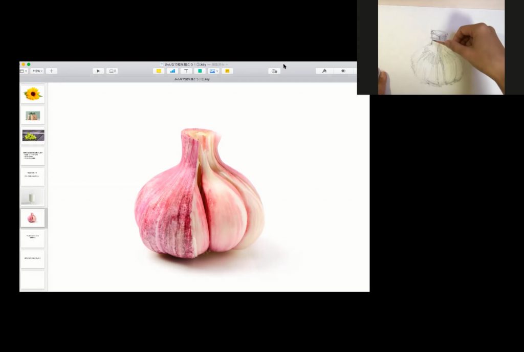 めでたく?全員一致で「にんにく」のモチーフになりました。短時間で描くにはちょっと難しいモチーフだったかも知れませんが、皆さんとっても集中して描くことができていました。