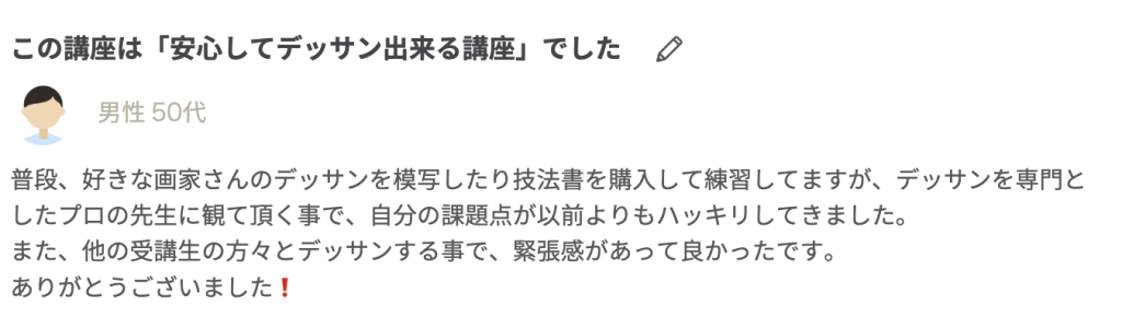 ストアカだけでも100回以上の開催、300人以上が参加で満足度が高いオンラインデッサン会です。