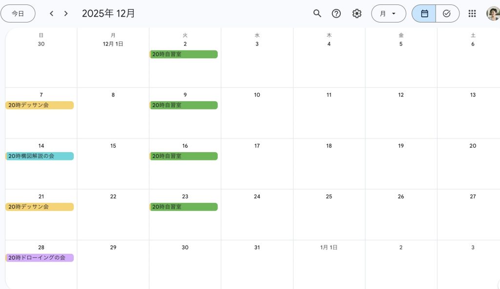 基本的にオンライングループデッサン会は、毎週日曜日の20時から開催しています。